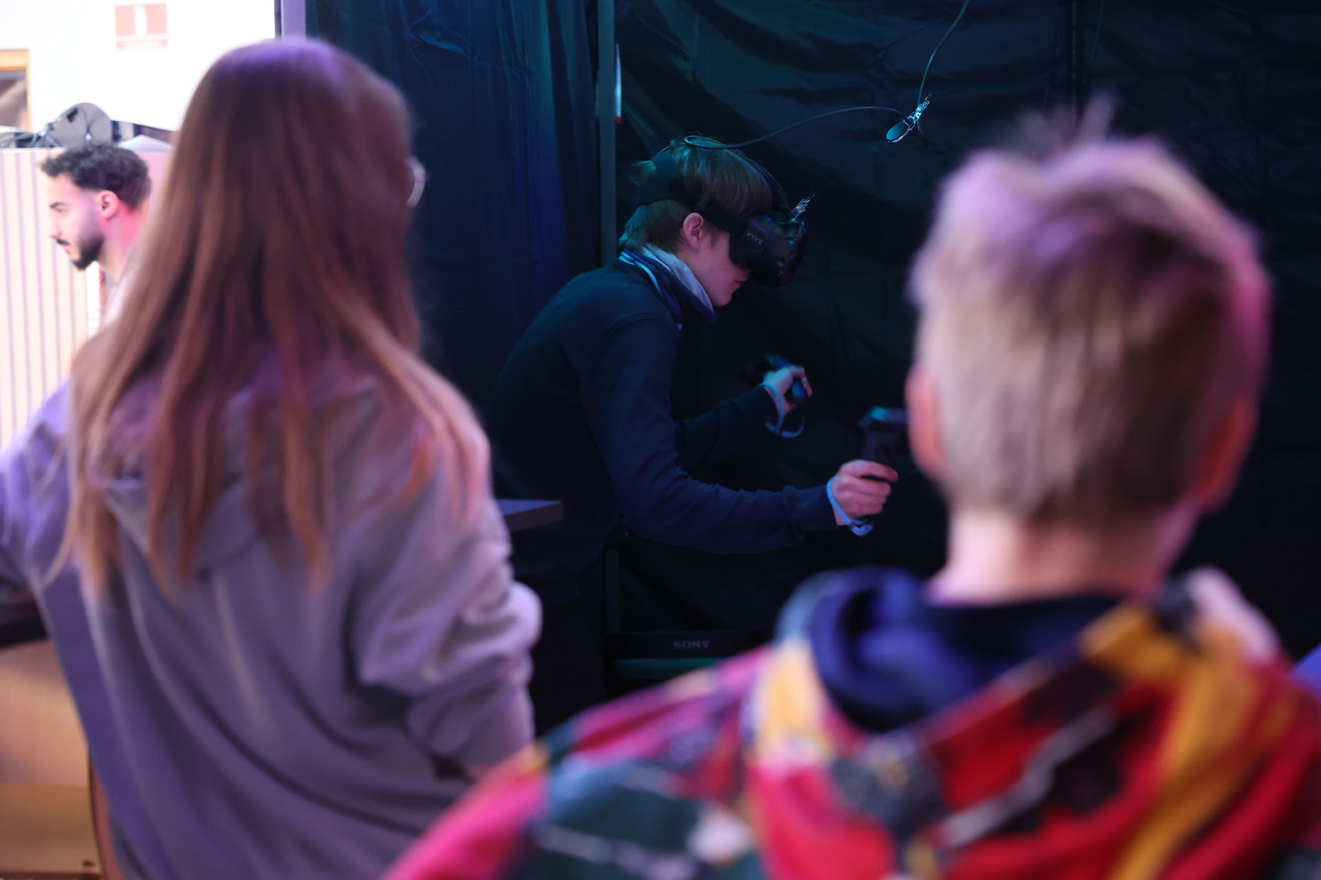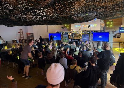 Sønderborg eSport havde deres egen stand på messen, hvor de skabte en åben og inkluderende gaming-zone for alle besøgende. Her stod fire gaming-maskiner klar, så man frit kunne sætte sig og spille lige præcis det, man havde lyst til uanset niveau eller erfaring.